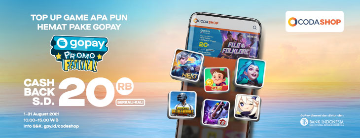 Download Promo Gopay Codashop Gif. Cashback 90% dan voucher cashback top up promo codashop pakai gopay! Dompet digital milik gojek memberikan promo cashback untuk kamu yang top up codashop menggunakan gopay.kamu bisa mendapatkan cashback. 50% (maksimum rp20.000) dengan minimum transaksi . Promo codashop gopay gojek beli voucher game diskon pubg mobil legend free fire potongan harga codashop gopay marvel super war. Kode promo gojek voucher cashback 75% pakai gopay di codashop & google play kode promo: